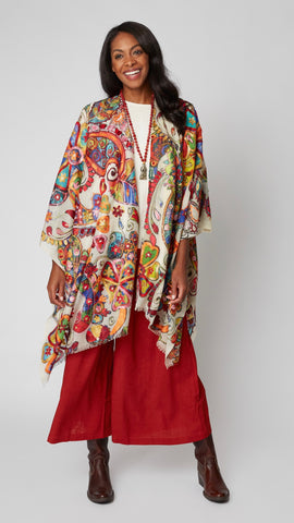 Frida Fine Wool Embroidered Ruana