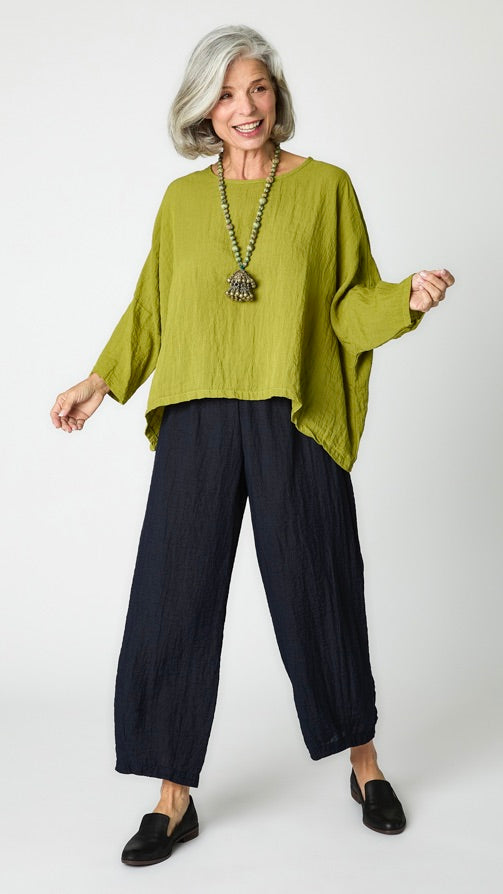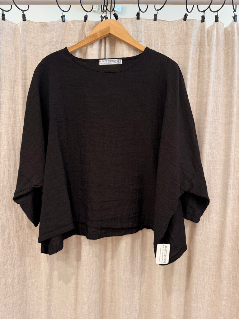 Our One Size Cropped Top is a simple scoop necked pullover with dolman sleeves and a smooth silhouette that fits and flatters everyone! Popular with our crowd for the past 10 years, the one size Cropped Top works overtime as a wardrobe essential. This season we've introduced a medium weight travel rayon so you can wear it year-round! Toss it over the Cropped Dart Pant in Travel Rayon for a wardrobe basic that you can depend on for any event. Dress it up with your favorite jewelry, scarf or jacket or wear it with jeans! Packs and travels. Easy to wear and easy to care for.
