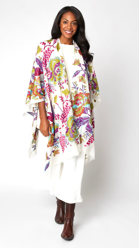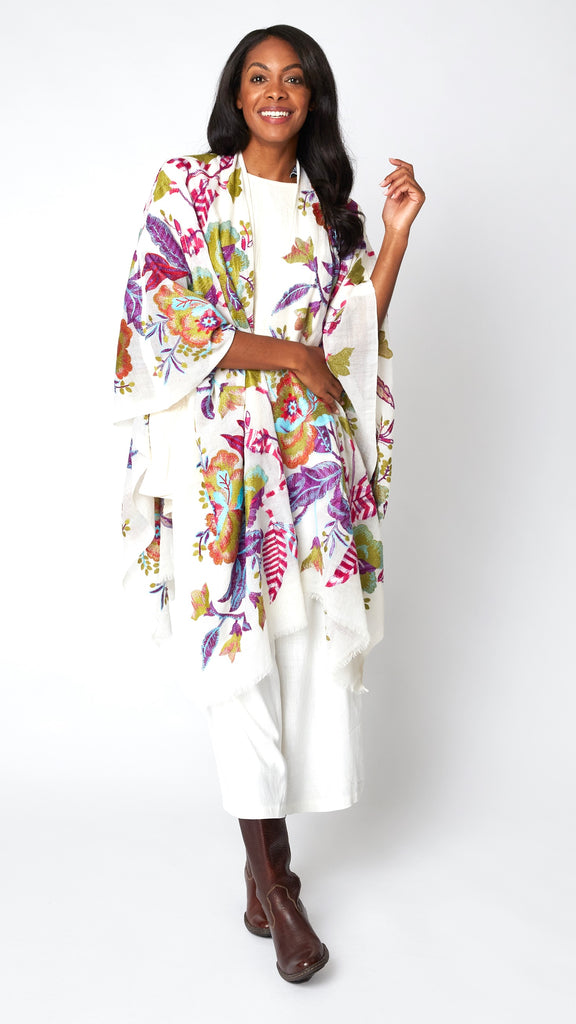 Jasmine Embroidered Wool Ruana